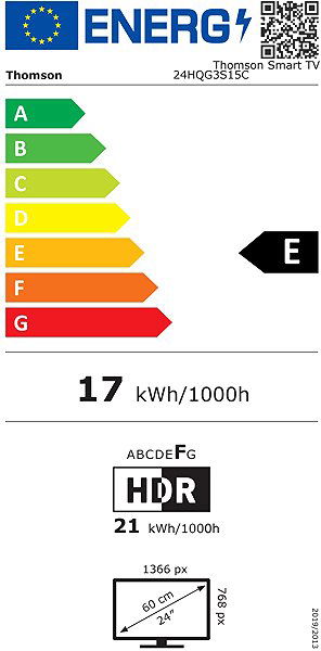 TV – SMART, LED, 61cm, HD Ready, 50/60 Hz, HDR10, DVB-T2/S2/C, 2× HDMI, 3× USB, CI+, LAN, WiFi, Bluetooth, HbbTV, Kopplung mit einem Mobilgerät, webOS, 12-V-Stromversorgung, Oneplay, VESA 100×100, Lautsprecherleistung 10 W, Dolby Digital Plus (E-AC-3), Energieeffizienzklasse E